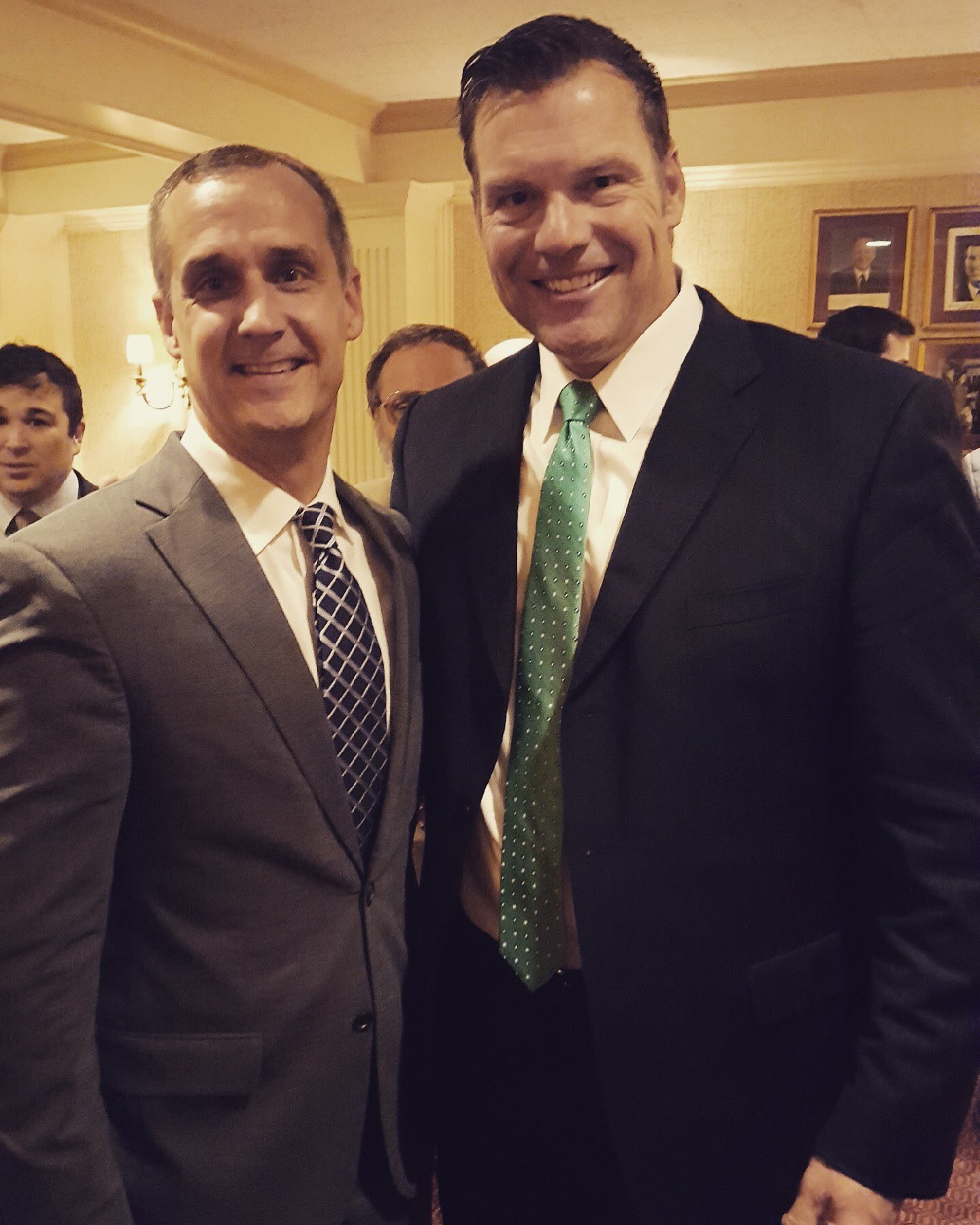 Less than two weeks after citing holocaust denier and racist Peter Gemma in his Breitbart column, Kobach held a fundraiser in Washington, D.C, for his Kansas gubernatorial campaign. At the November 3 event, Kobach posted a photo of himself on his Twitter account with former Trump campaign manager Corey Lewandowski. Behind both men, clearly visible, is longtime white nationalist Marcus Epstein.